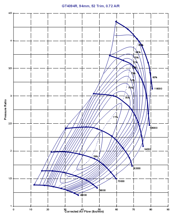 Вы пожалуйста не путайте грешное с праведным. Какие бы вы турбины не ставили - на стоковых коллекторах на стоковых ГБЦ при входе в турбину 38мм - даже если будет написано на бустконтролере 2.0 бара - это же не значит, что это его реальный рабочий надув... Это пик... При таких турбинах со стоковыми коллекторами на МАФе , даже с нормальной топливной системой, хотя и на стоковых рейках, снять больше чем 500 л.с. на двигателе не реально. Я лично думаю что там сил 450 на маховике - не больше. Так как продувка системы больше чем например 10-14 литров в минуту не выдует. У меня на старой турбине Garrett GT4094 aka 42RS при попиляных бошках, при ранерах выпускного коллектора в 60мм, при АЕМ настройке, на 1000сс форсунках с огромным куллером, выпуском в 90мм трубы - было на 1,57 надува 626 л.с. и 806Нм крутящего - при этом турбина максимум прокачивала 72 лабасов воздуха в минуту - тоесть 33 литра в минуту при топовом рабочем надуве - не в пике. Вот и подумайте если вы, допустим, в стоковый мотор надуваете 1,5 бара (14 литров воздуха в минуту - при этом на 550 форсунках обезпечиваете нормальную смесь будет результат один. Но при этом, если вдруг вы в тот же двигатель надуете 1,5 бара на большой турбине 30-35 литров воздуха + 1000сс форсунки и нормально это настроете - он будет тупо в два раза мощнее и показатель Engine Load в AEMe вам это подтвердит...
