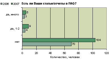 Напомним, в опросе прошлого (2006) года приняло участие 77 человек. Таким образом, число опросившихся возросло на 53% по сравнению с прошлым годом.